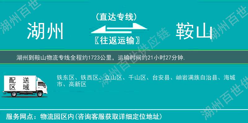 ★ 本站所列湖州到鞍山物流专线费用与时效仅供参考,如需详细了解收费标准请电话咨询。