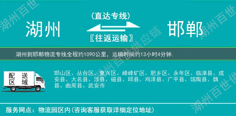 湖州百世供应链秉承"用心呵护,值得托付"的服务理念,凭借湖州到邯郸物流的优_质平台,始终致力于为客户提供优_质*的湖州到邯郸物流专线-湖州至目的城市}物流公司运输服务。