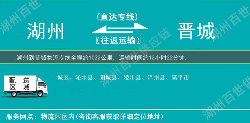 ★ 本站所列湖州到晋城物流专线费用与时效仅供参考,如需详细了解收费标准请电话咨询。