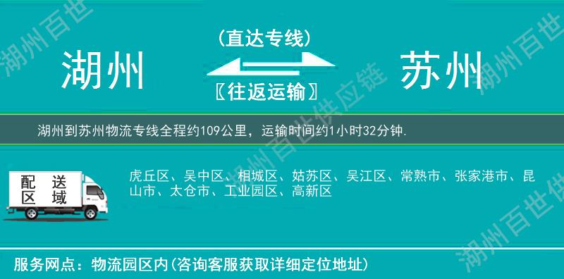 湖州到苏州物流专线是湖州百世供应链从湖州发往至苏州的物流货运专线,天天发车二到三天即可抵达,苏州可送货的范围包括: 吴中区、吴江区、昆山市、张家港市、虎丘区、姑苏区、高新区、太仓市、工业园区、相城区、常熟市、。