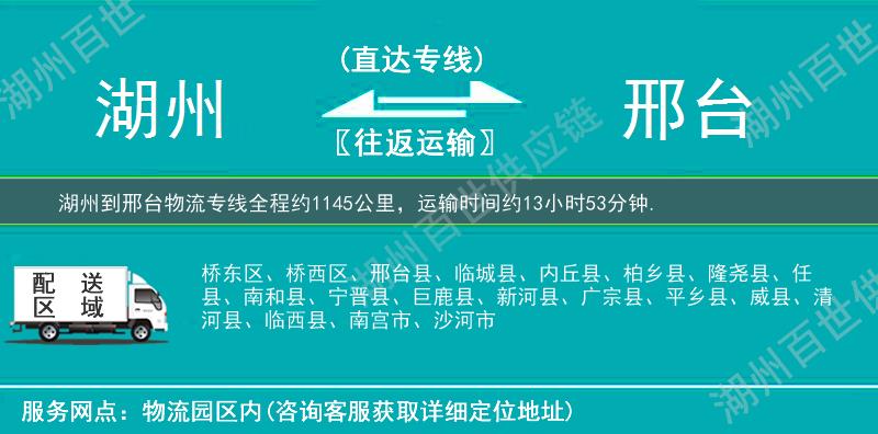 湖州到邢台物流专线-湖州到邢台物流公司_运费多少「诚信经营」